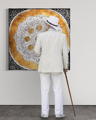 ÓLEO L FIGURATIVO SÍMBOLOS DORADOS Y BLANCOS 120X120