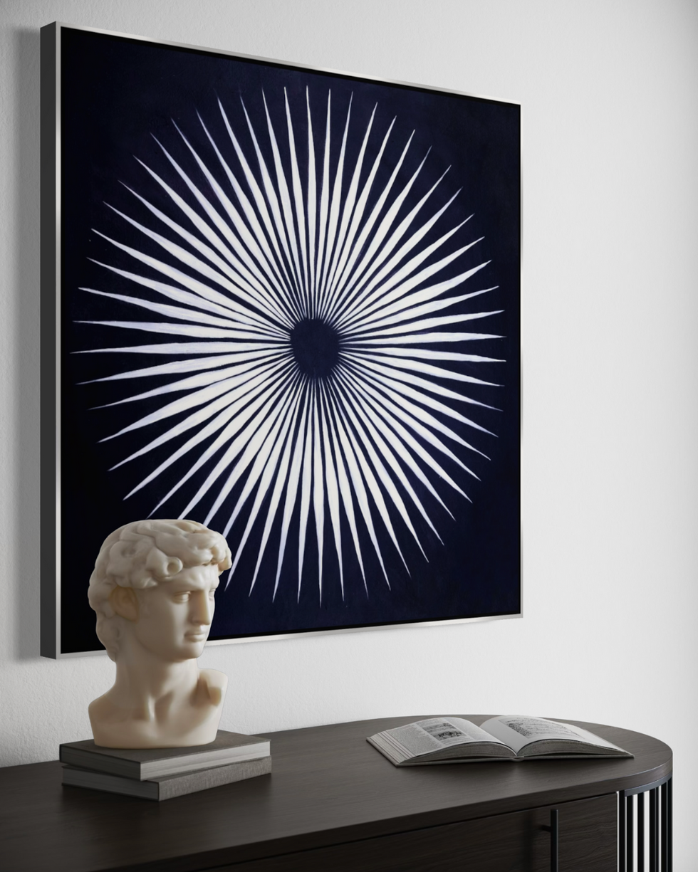 ÓLEO L FONDO NEGRO SOL CON RAYOS PLATEADOS 120X120