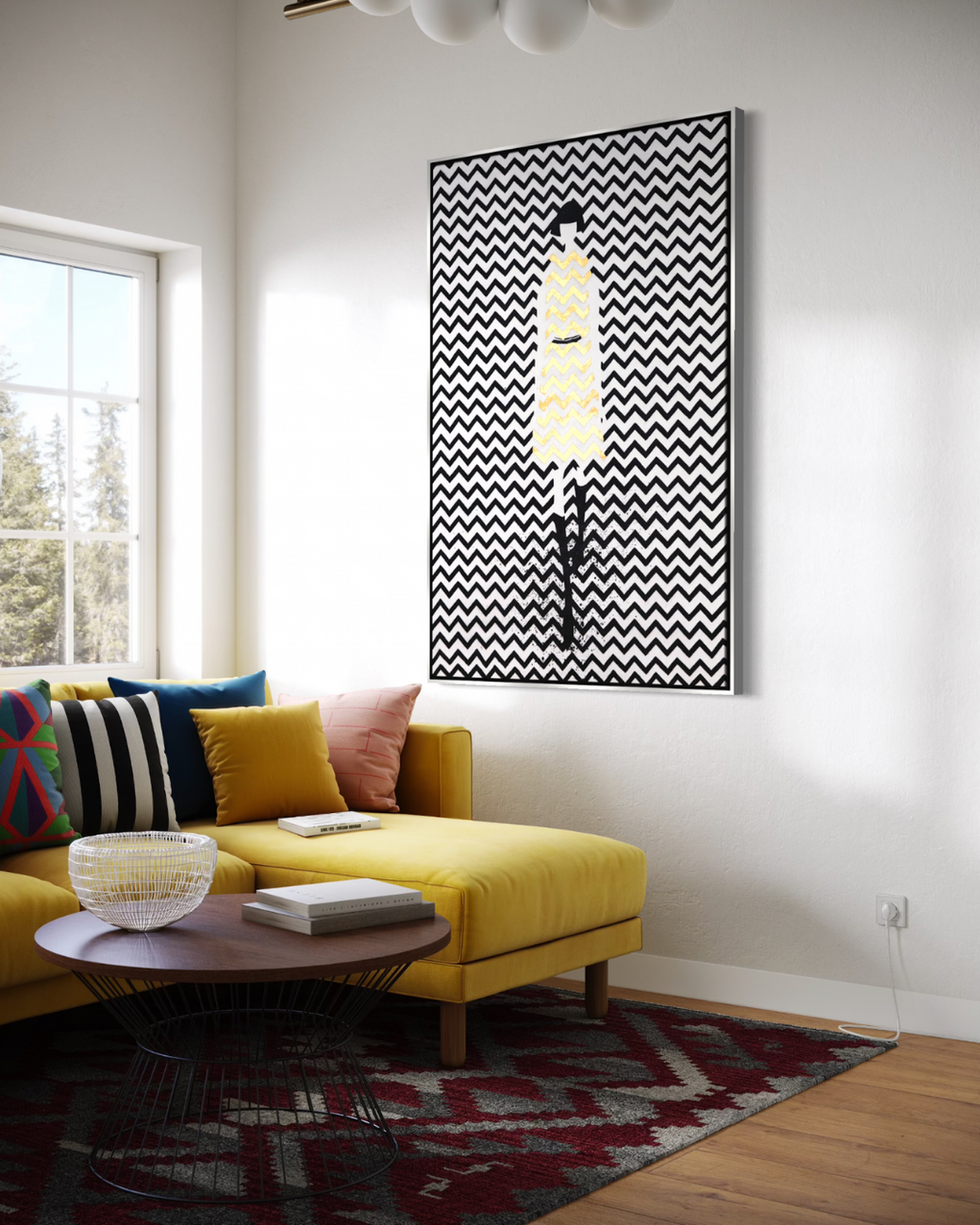 ÓLEO L MUJER EN VESTIDO AMARILLO 100X150
