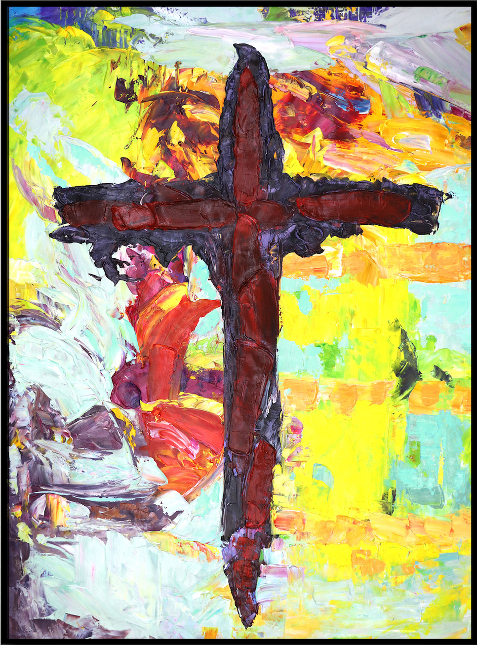 ÓLEO XL FONDO AMARILLO CRUZ CON RELIEVE 120X160
