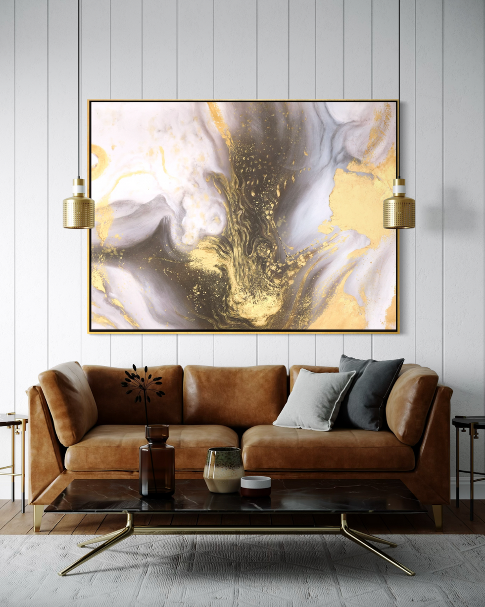 ÓLEO XXL ABSTRACTO NEBULOSA DORADA 150X200