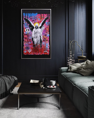 ÓLEO ÁNGEL CON FONDO ABSTRACTO 90X150